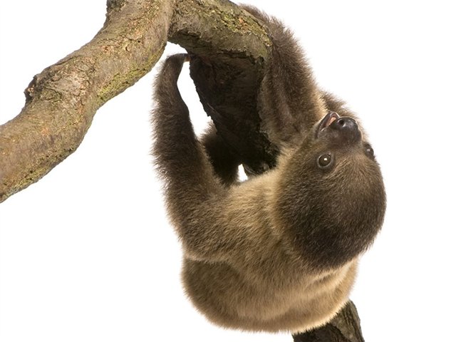 The two or three toed sloth is a most peculiar animal living its entire life in the trees hanging around upside-down in a docile easy going lifestyle. Their hair is overgrown with moss, along with the slow-mo keeps them well camouflaged while eating leaves.